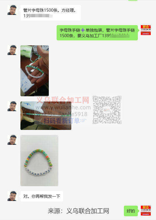 【老板在线等】字母珠手链+单独包装外发,要义乌加工厂
