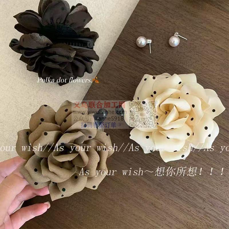采购如图波点的花朵抓夹成品,有现货的联系详谈、如图、