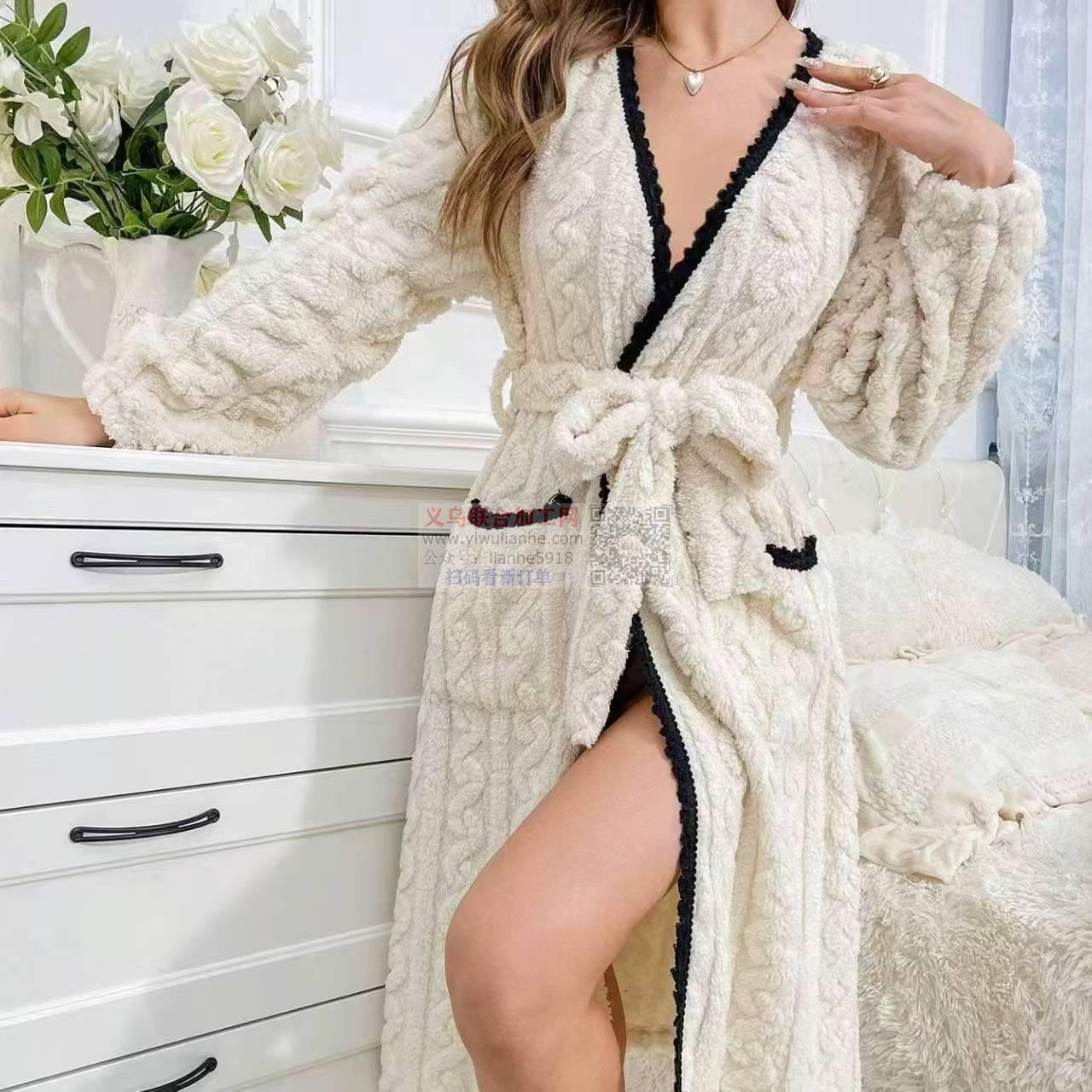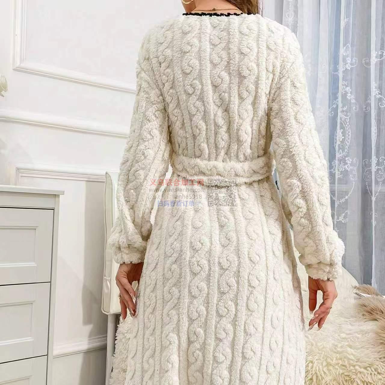 。订白线,袋口,领连门抽单包2个针,前片贴袋,袖口缝松紧坎车,腰带封口,下摆坎车杀针(缝线用缝,寻找专业做睡衣的加工厂,请联系详谈厂,长期合作,仅限义乌周边。