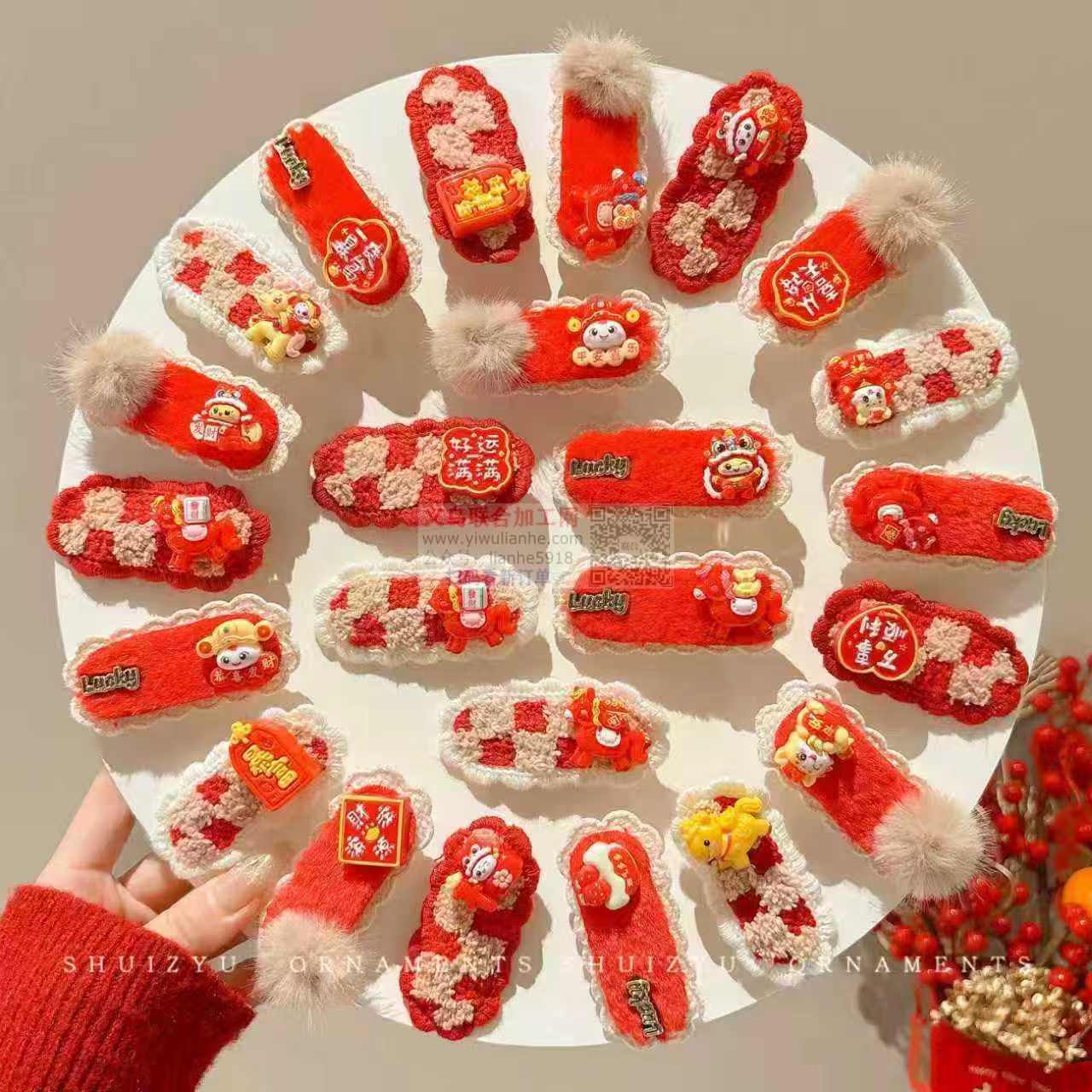 如图,采购新年包布红色发夹,每年都会做,