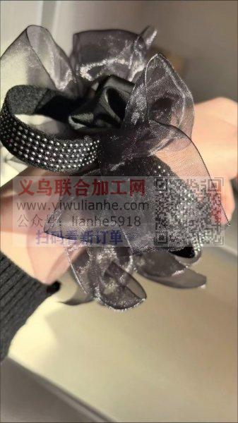 头花成品订单,寻找包工包料做成品的工厂。如图,网纱织带发圈,寻找成品,有货的联系详谈,