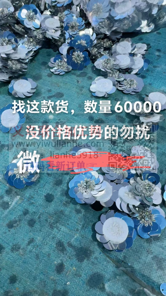 找这款手缝的亮片花,数量60000