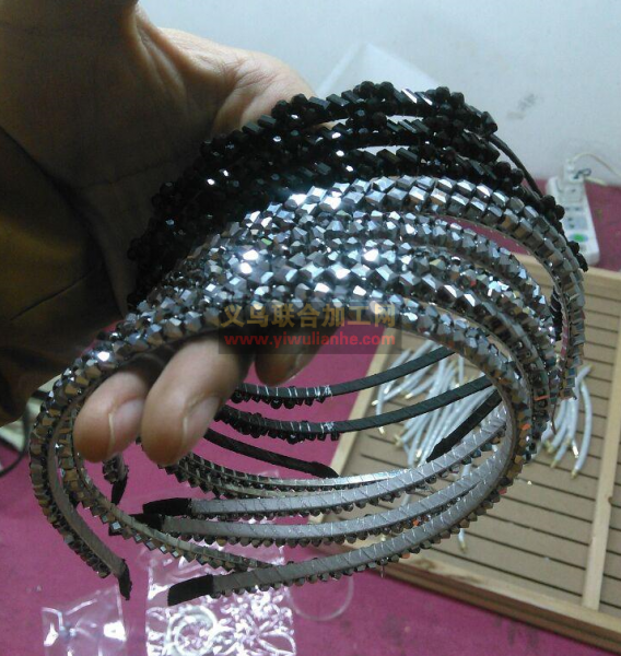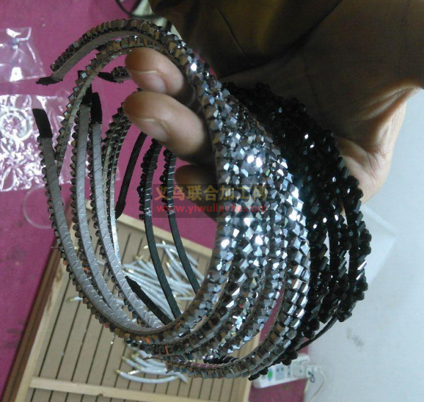 布艺发箍上面手缝珠子的手工活外发,注意看