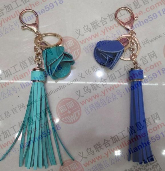 PU流苏钥匙扣,PU玫瑰花钥匙扣外发加工