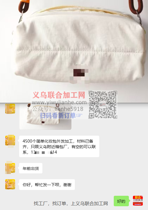 微信公众号:义乌联合外发加工网